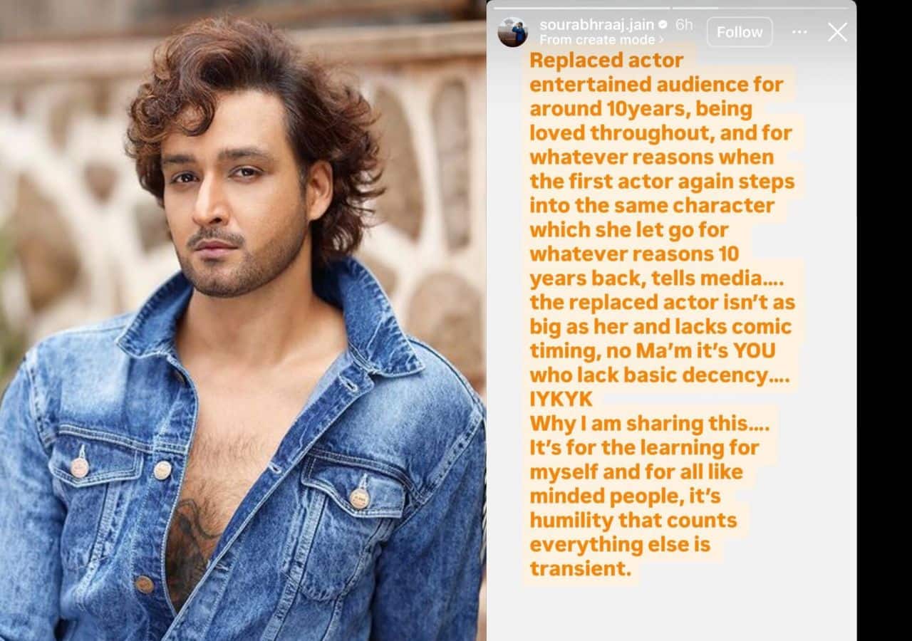 सौरभ राज जैन (Sourabh Raaj Jain Post) ने अपने पोस्ट में लिखा, 'जिस एक्ट्रेस को रिप्लेस किया गया, उसने करीब 10 साल तक दर्शकों का मनोरंजन किया. उसे हर समय प्यार मिला और पता नहीं क्यों, जब पहली एक्ट्रेस उसी किरदार में वापस आई, जिसे 10 साल पहले उसने न जाने किन कारणों से छोड़ दिया था, मीडिया से कहती है कि रिप्लेस की गई एक्ट्रेस उनकी जितनी स्टार नहीं है और उनमें कॉमिक टाइमिंग की कमी है.'