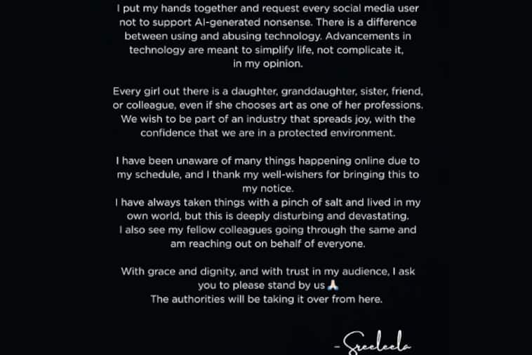 Telugu star Sreeleela on Wednesday took to Instagram to share a long post about the AI-generated videos that are being made of girls, just after Payal Gaming's private video got viral.