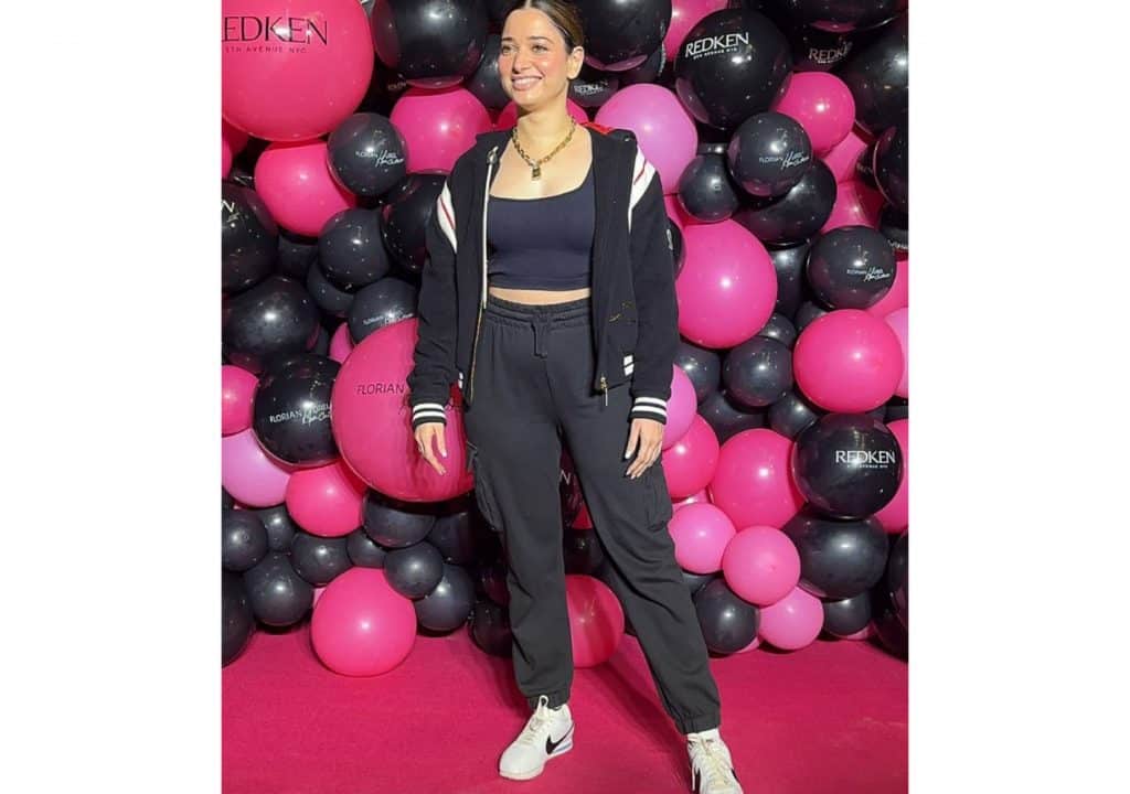 The Kaavaalaa diva is ruling the headlines and how. From her amazing dance moves to love affair with Vijay Varma, she is in the news. She is also attending quite a few events. At a recent event, the actress showed up wearing athleisure wear. She was seen in black joggers, a black cropped top and a jacket. Not a glamour event, she appeared dressed perfectly for the gym.