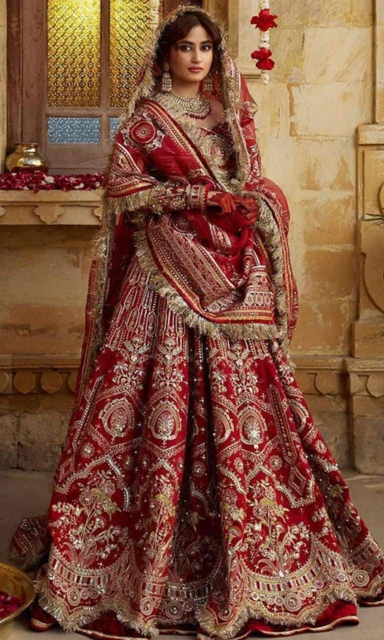 Sajal Ali looks breathtakingly gorgeous in this heavy embroidered lehenga set paired with heavy dupatta.